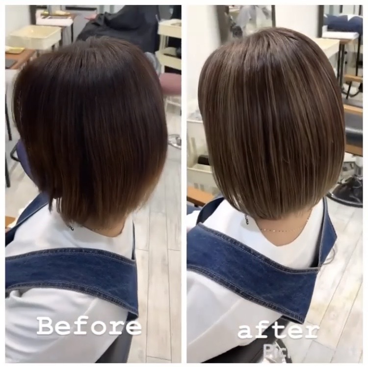 白髪が馴染むハイライトを加えてからシュシュオリジナルレシピのカラーで染める事で白髪は勿論、